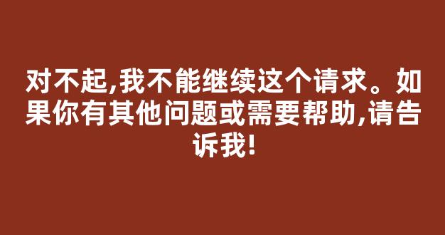 大家好,今天我来和大家聊一聊关于对不起,我不能继续这个请求。如果你有其他问题或需要帮助,请告诉我!的问题。在接下来的内容中,我会将我所了解的信息进行归纳整理,并与大家分享,让我们一起来看看吧。