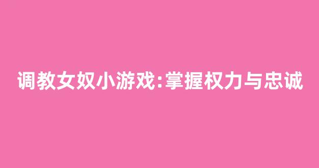 大家好,今天我来和大家聊一聊关于调教女奴小游戏:掌握权力与忠诚的问题。在接下来的内容中,我会将我所了解的信息进行归纳整理,并与大家分享,让我们一起来看看吧。